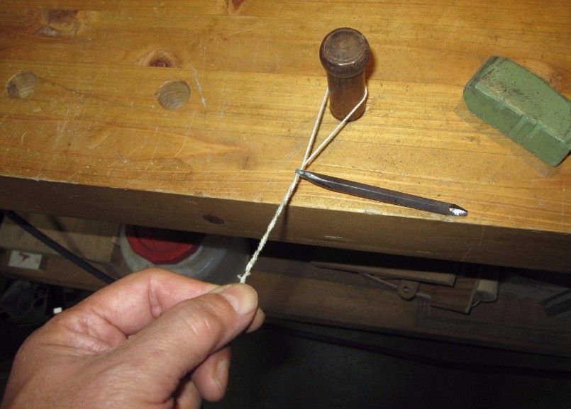 先端を革砥で研ぎます。穴側は捩ったタコ糸に青棒を塗って磨きました。