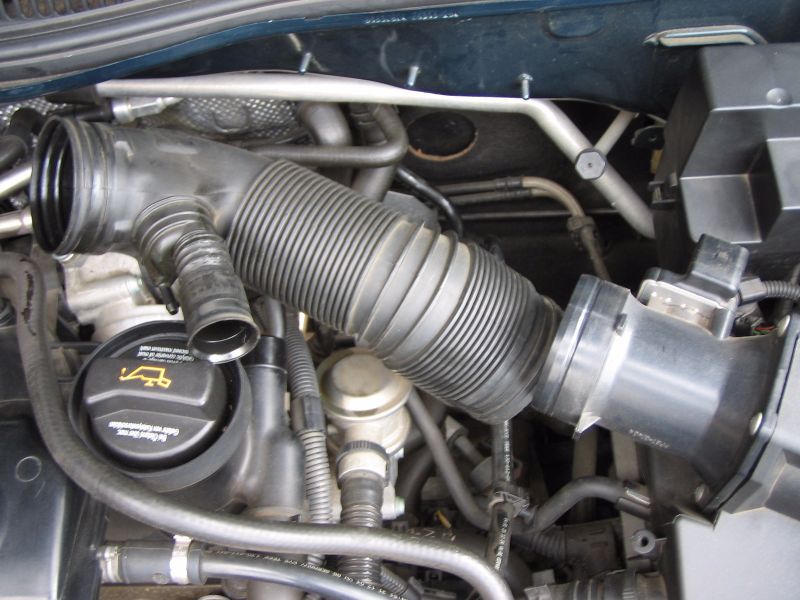 始めにエアインテークホースを外します。パイプクランプを外すのに