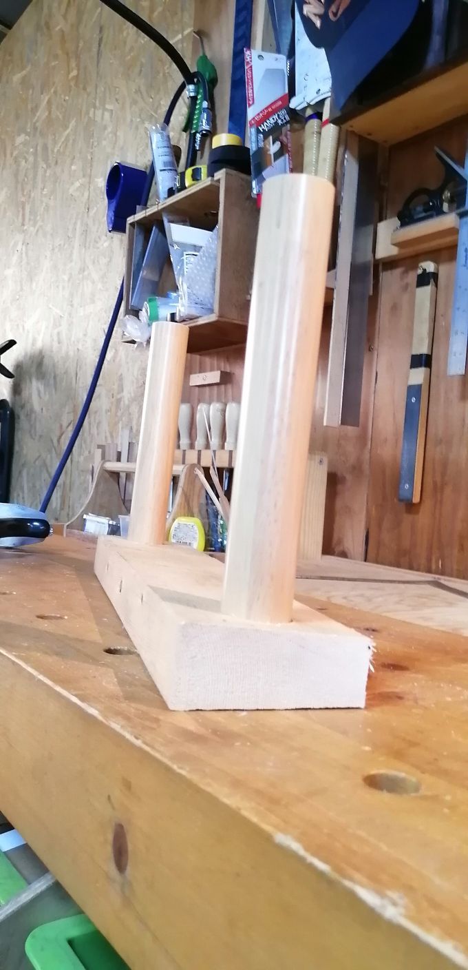 支持棒を上向きに固定したいので少し斜めに削ります。