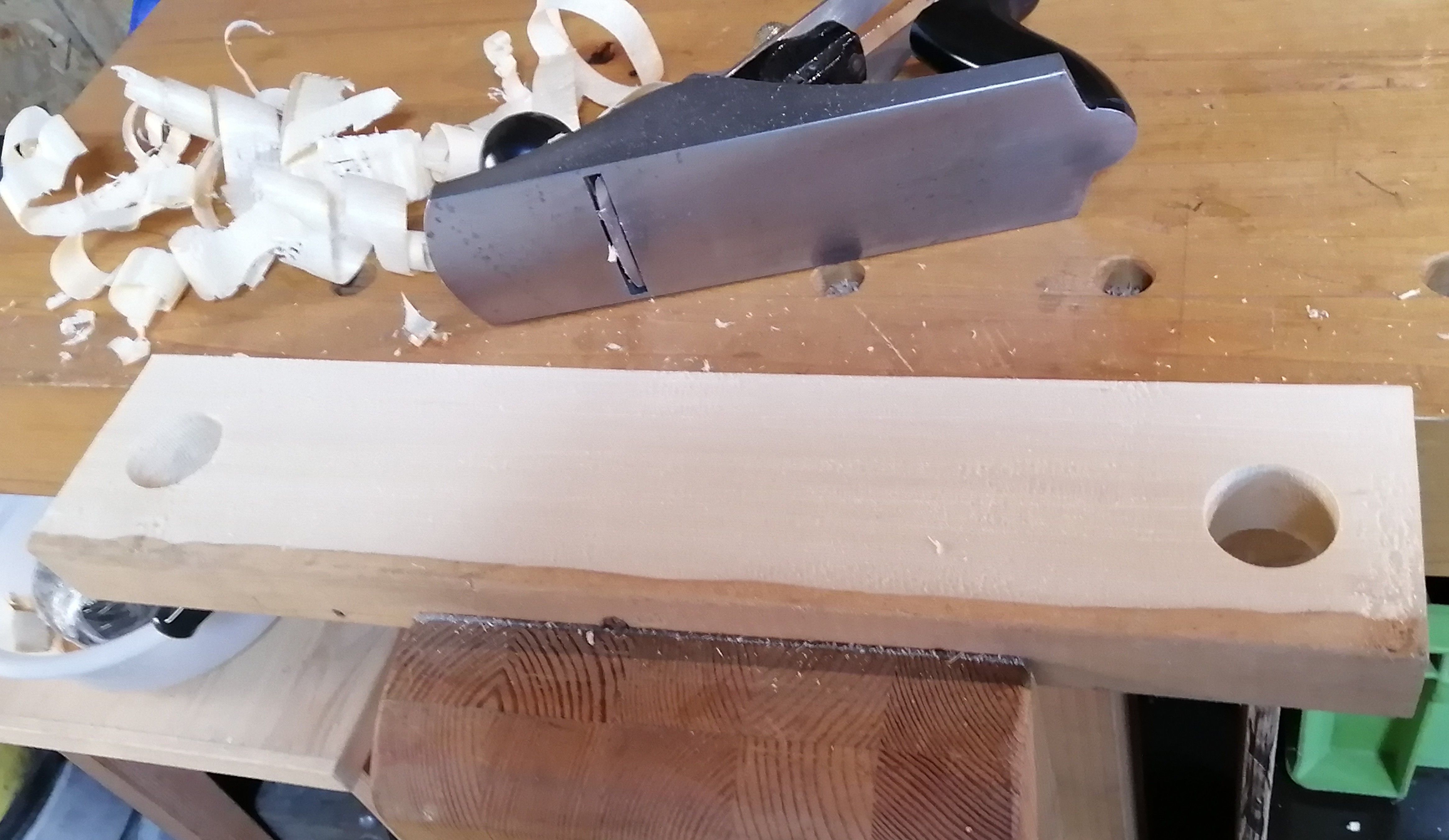 ラウンド刃に改造した西洋鉋で荒削りしました。