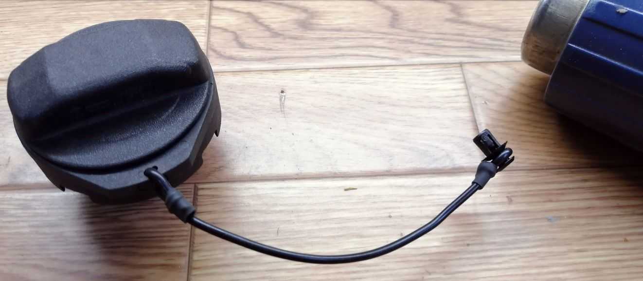 黒のビニール電線を用意してキャップ本体のタブに穴開けし