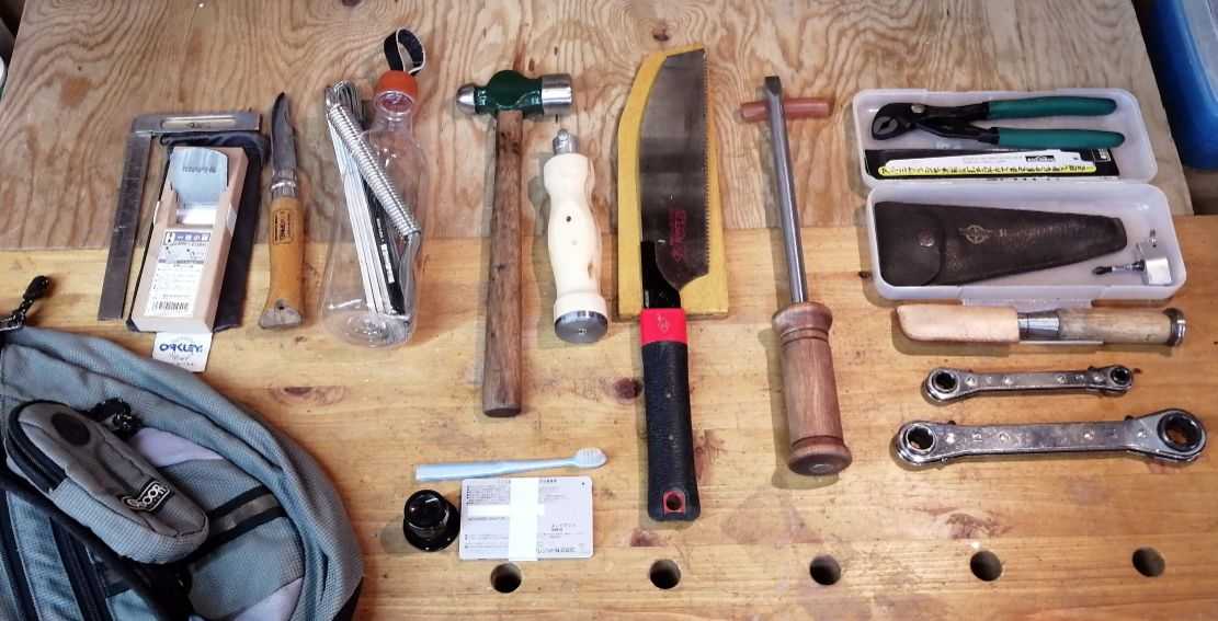・・ハンマー、自作ハンドソーハンドル、小型鋸、自作プライバー