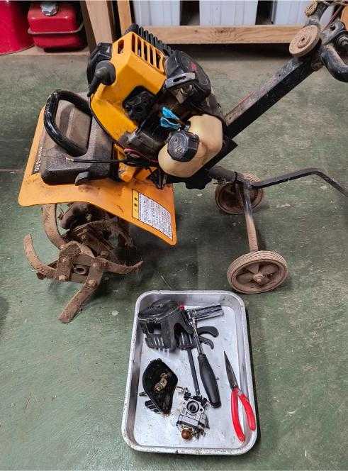今春には小さな畑を耕したRYOBエンジンカルチベターRCV-330を始動させようとしましたが全く掛かりません。😵プラグを外して試すと点火は良好ですが、プラグが濡れない事からガソリンの吸入が弱いと見当をつけました。キャブレーターが不調なのかと取り外してみるとポンピングキャップやダイアフラム、燃料ホースなどの経年劣化が認められます。😓キャブはWalbro製で、エンジン排気量33ccと外観からWYJタイプのようです。・・細かく部品を揃えるのも面倒なのでアマゾンに互換品を一式注文しました。https://www.amazon.co.jp/dp/B09ZNN33Z6?ref=ppx_yo2ov_dt_b_fed_asin_title&th=1写真右が互換品です。赤のチョークレバーが見えますがで実機の吸入カバーにチョーク機構があるので使いません。😁早速、取り替えてみましたが・・始動せず!・・やはりガスを吸っていない感じで初爆がありません。購入した互換キャブを疑って元のキャブのポンピングキャップを交換して試しましたが・・やはり始動しませんでした。🥲Uuuummm・・その日はタイムアウトで明日、再トライしてみます。😅そして・・その晩、睡眠中😁に思い出した事があります。・・もしかして排気側の詰まりで吸入しないのでは?・・12年前の似た事例を思い出しました。https://plaza.rakuten.co.jp/citroen/diary/201309290000/やはり、蜂(土蜂、泥蜂、ジガバチ)が排気口を土で塞いでました。😂・・ドライバーで排気口をグリグリと貫通させると無事、始動しました。・・アイドル回転の上がり過ぎを調整してOKとなりました。😀2ストのバイクでも同様な事例を聞きますが、同じ耕運機で二度も経験するとは思いもよりませんでした。(^_^;)
