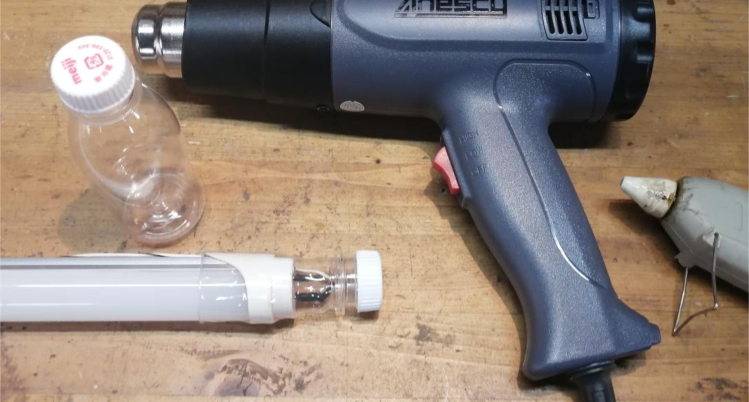 実は・・先日の吸気系・修理中に起きたトラブルはもう1件ありました。😂作業を中途して帰宅する際、ボンネットに自作LED蛍光灯式・作業灯を取付たままにしておきました。翌朝ガレージに赴くと寒さの為か・・ボンネットダンパーが縮んでボンネットが勝手に閉てしまいLED灯を挟み込んでロックされボンネットが二進も三進も行かない状態でした。😱アレヤコレヤと手を尽くし、なんとかロック部に針金を通し、引き寄せてボンネットを開ける事が出来ました。😅その際にLED灯に付いていたボンネットフックをカットしましたので・・LED作業灯の吊り下げ方法を作り直します。今回はLED蛍光灯の両端をカバーするのに家にあった明治ヨーグルトR1の空容器を使ってみます。・・ペットボトルをヒートガンで熱してシュリンクさせます。もう片一方は電線を通しハンダ付け・結線しました。バンジーコードを探しにセリアに征くとキャンプ用品の中に使えそうな物がありペットボトルの首に2重に巻き付けました。ゴルフ4のボンネットに在る長穴にカラビナを引っ掛けて・・LED作業灯復活です。😀ペットボトルって簡単に熱収縮するので他にも色々使えそうです。😁