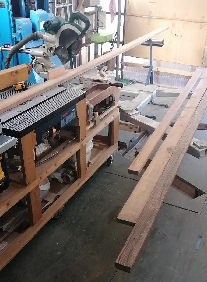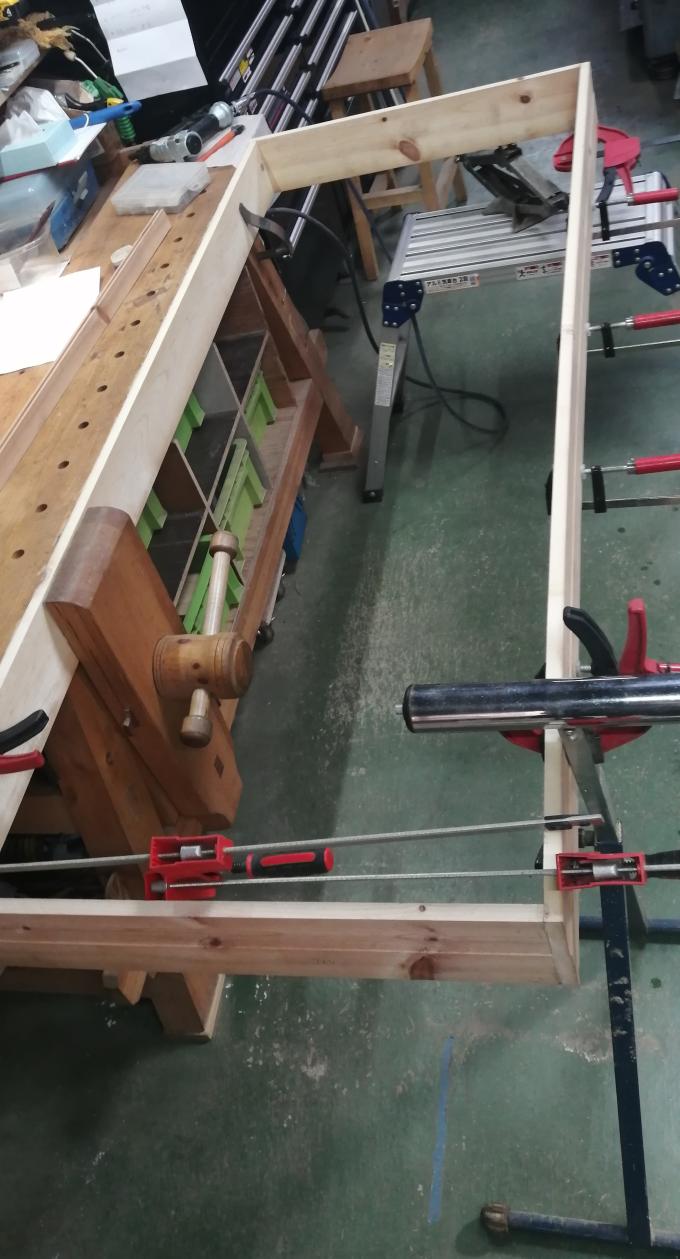 この時期寒いので、どうしても屋内作業になります。🥴今まで色々な作業台を作り使って来ましたが・・高さがチョット低めの作業台も活用範囲がありそうなので・・Chinese Work Benchなどと云う古風な物を作ってみたくなりました。制作デザインの参考にしたのはコチラです。このデザインを自分なりに適当なサイズでトライしてみます。😁こちらも頂き物の素材をテーブルソーで製材します。板材1枚では幅が足らないので継ぎ合わせします。サイド面を鉋で平面を合わせ・・ダボ穴を開けて接合します。木工ボンドを塗り塗りしクランプで締め上げています。一晩、乾かしたら次の工程へ進みます。😀・・・続く・・・