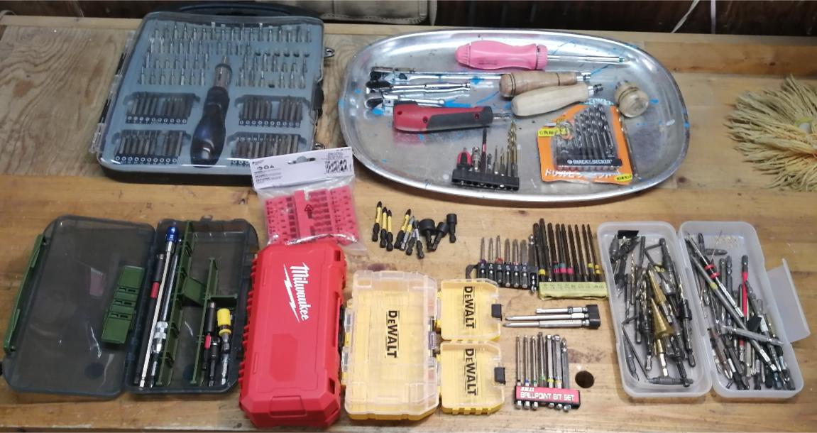 近年、車の整備だけでなく木工などでも1/4インチ六角軸ビット工具が汎用的に使われ、インパクトドライバーと共にスタンダード工具の仲間入りした言えます。🤠まだまだ進化し、増えそうなビット工具なので一度整理しょうと思いDaisoに加えMilwaukee, DeWaltなどのビットホルダー・ケースもAliExpressで調達しました。まず、手元にある主なビット工具をざっと並べてみました。・・これらを使いやすく配置したいものです。😀ある程度、取捨選択し、ドリルビットも加えて、それぞれケースに入れ込みました。ここで気づいたのですがMilwaukeeのビットホルダーは抜き差しが片手で出来るスグレモノですが・・国産ビットだと首下が長いので適合しにくいです。・・自分の場合、Bosch などUSビット中心なので問題ないのですが。。😅・・(国産ビットはBoschより先端の耐久性が低いと感じています。)写真左隅はDaisoの釣具ケースにMilwaukeeのビットホルダーを入れてみました。・・・この中で直近でAliExpressから購入したツール・・・写真上のGEINXURNは狭い場所に突っ込める細めのエクステンションです。・・マグネットだけだとビットが抜ける場合がありますがコイツはバネ併用です。その下のビット・3/8ソケット変換ですが、これが曲者で先端にビット穴がありビットとソケットの両用です・・面白そうなので実用になるのか使ってみます。あとは中国製DeWaltのPH2ビットを比べたいと思います。一番下がDeWalt木ネジ用マグネットホルダーです。このタイプはネジが安定して吸着できます。他には・・8/10/13mmマグネットナットドライバーを・・狭い場所で小さなボルトナットを落とすとリカバリーが大変なので購入してみました。これらのケースを纏めて入れるキャリングケースも用意します。年末年始にUSアマゾンのセールで購入したオッシレーティングツールを使って古い工具のプラケース内側を一部分カットしました。そうして・・ビットケースをキャリングケースに当て込むと・・思ったよりピッタリと嵌ってくれました。 😁古いマキタのケースがビット用キャリングケースに変身です。😀これで、大概整理できました。Milwaukeeのケースは頑丈そうでよさげです。Daisoのケースも十分使えますね。今後も使い方に応じて改善できれば思います。🤠