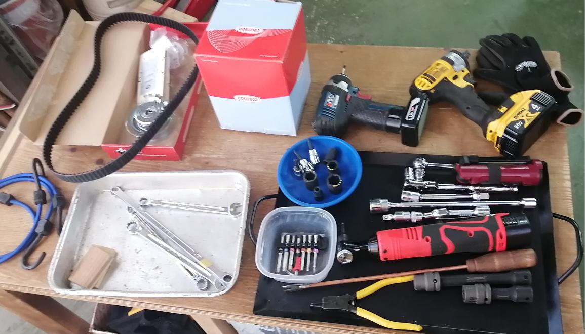 先日、ミッションマウントは交換しましたが、それよりヘタリが見えているエンジンマウントを交換します。併せてタイミングベルトも替えてみようと思います。😀(ウォーターポンプは2年前に交換済み)https://plaza.rakuten.co.jp/citroen/diary/202303150000/最初に使いそうな工具類を並べて作業をスタートしました。左下アルミパン上に10mmと14mm厚の木片も用意しました。・・マウントのアライメント確認用です。😁作業スペースを確保するため配管は最小限に外して邪魔な部品を除けときます。・・実際の作業例はYoutubeに沢山あり参考になります。 🤔https://www.youtube.com/watch?v=_vSEoZUa394&ab_channel=BenzMackanエンジン側のマウントが隙間からナカナカ取り出せず難儀しました。かなりエンジンをジャッキアップしてなんとか外せました。 😅新しいテンショナーを取付けて、タイミングベルトを入れようと四苦八苦・奮闘しましたが入らず・・思いついてVVF銅線を掛けバイスプライヤーで曳く事で、容易に掛けることが出来ました。😆テンショナーの調整は手持ち工具の組み合わせで行いました。同時にテンションの緩め・締めを5回繰り返すというオマジナイのような基本作業もやっておきました。タイミングマークの確認で4回程エンジンを回した後再確認し、もう一度テンションを合わせておきました。🤠この後、一番時間が掛かったのがエンジン側のブラケットがこのエンジンの場合、本当に入り難くて困りましたがエンジン下から入れてエンジンを上げ下げしつつ抜き上げるというアクロバット的作業でやっと入りました。😅新しいエンジンマウントとブラケットを接合し補機類を組戻して完了です。エンジンを始動してみると今迄より静かに回転しています。タイミングベルトとマウントの相乗効果でしょうか。。😀古いエンジンマウントはソレナリに劣化していてダンピング効果が薄れており交換で正解でしょう。タイミングベルトはヒビもなく10万kは行けそうです。テンショナーは回転は良好ですがソロソロ交換かなぁ。。ということでVW推奨の交換時期8万kはいいトコですね。😁Clock:70500k