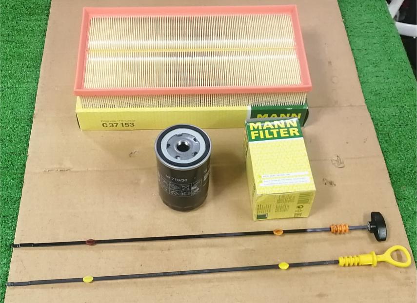 車の修理をしていると・・稀に修理案件以外の事態に面食らう事もあります。😱先日、吸気系の修理中にオイルレベルゲージを点検しようと引き抜いたところキャップ首部分がポロポロと崩壊しました。元々の引手部分は既に取れており手元にあった黒いツマミを接着して使っていました。😅やむなく部品をネット注文しようと06A115611Qと検索すると・・同等品が国内で2500円前後、AliExpressで5〜700円程度でした。ところがヤフショのショップで純正品が1100円と安く販売されており、3000円以上の購入で送料無料となるそうなのでフィルター等を併せて注文しました。早速、届きましたので検品して行きます。オイルレベルゲージの方は長さが違うと意味をなさないので古い物と比較しましたが流石に純正品を謳っていますのでドンピシャリで安心しました。😀VW・Audiのマークや部品番号もチャント入っています。写真上のMANNエアフィルターは普通な感じです。ですが中段のオイルフィルターMANN W719/30は私の眼から見るとB級品でした。ケースの円周部が綺麗な円を描いておらず、ゴムパッキンもわずかにヨレている感じがあります。実用上の問題はありませんが、以前AliExpressでMANNの純正品を購入できる時期があったのですが・・その時に購入した製品は良い品質だったと記憶しています。箱や商品にはMade in Germanyとありますが・・中国語の記載もあり・・箱の紙質から考えても・・恐らく3点とも大陸製だと想像します。🤔オイルレベルゲージを差し込んでみました。ピッタリです。別途、下側のオイルレベルチューブはプロでも修理中に工具をぶつけ易く古いと硬化して折れやすいので、予備品をストックしています。 😁
