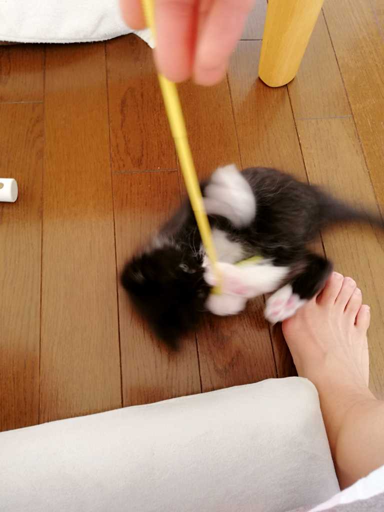 猫じゃれる。