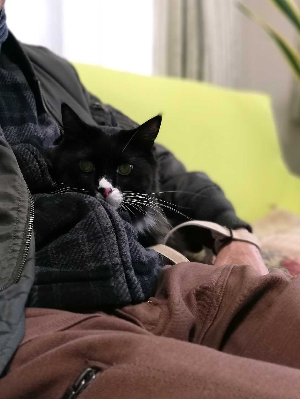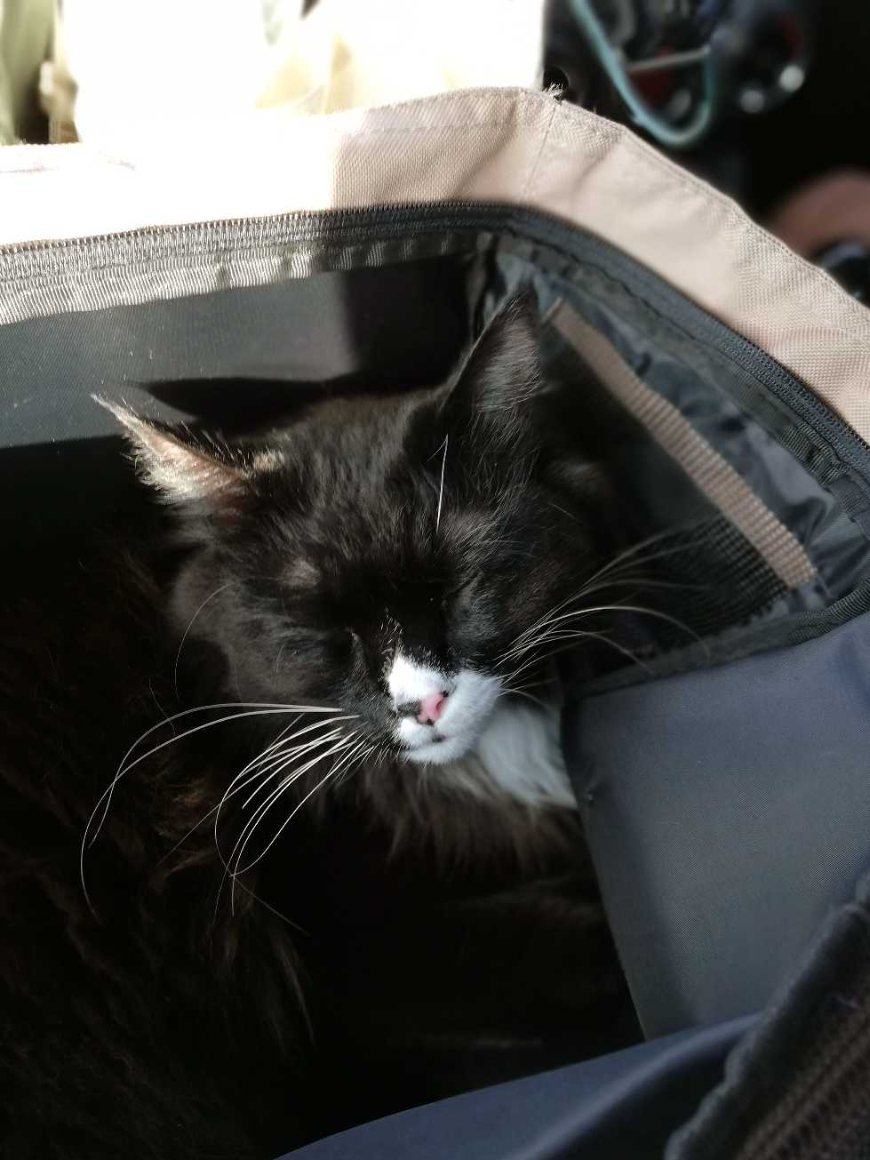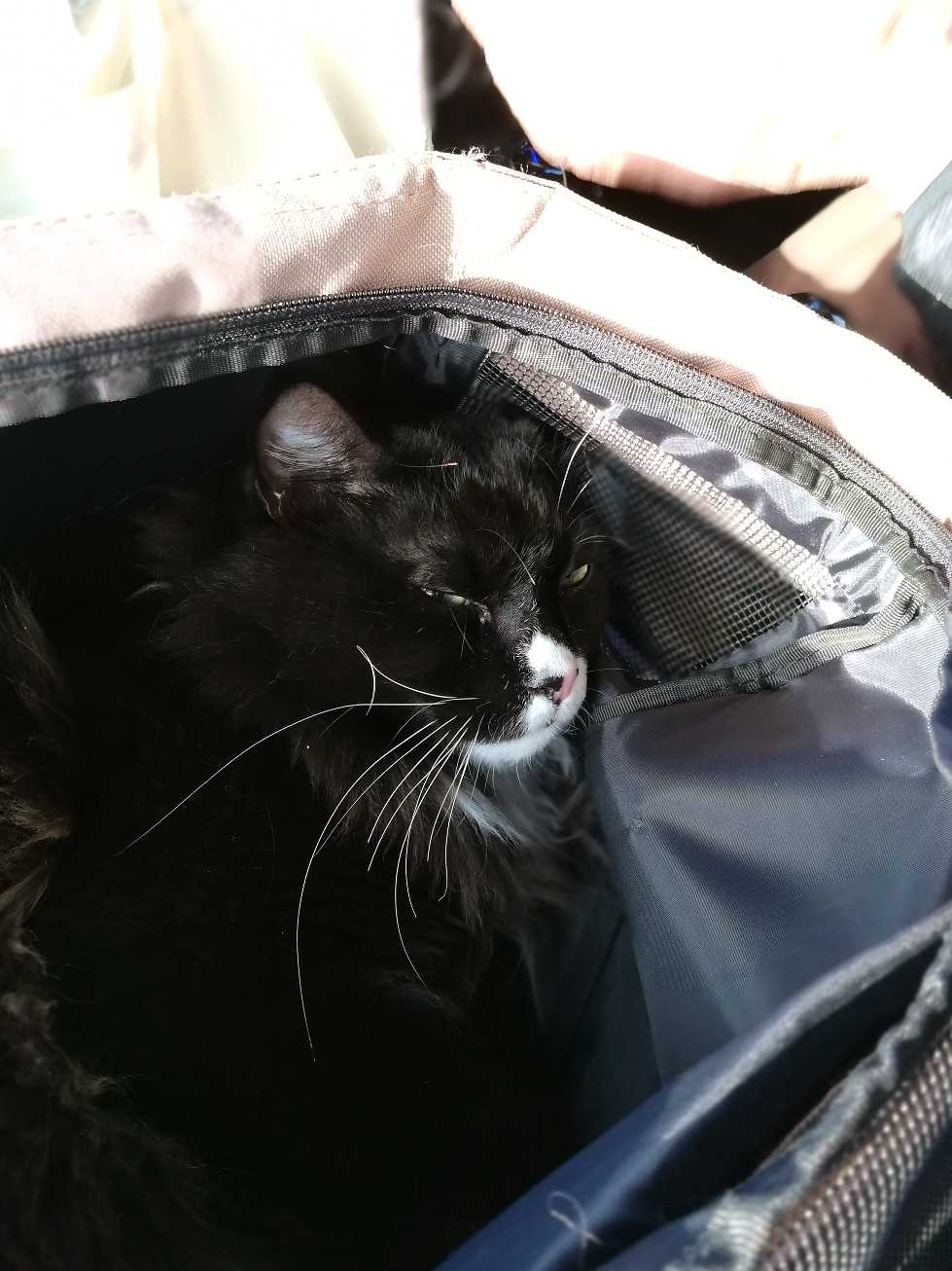 ひざの上でバッグのまま