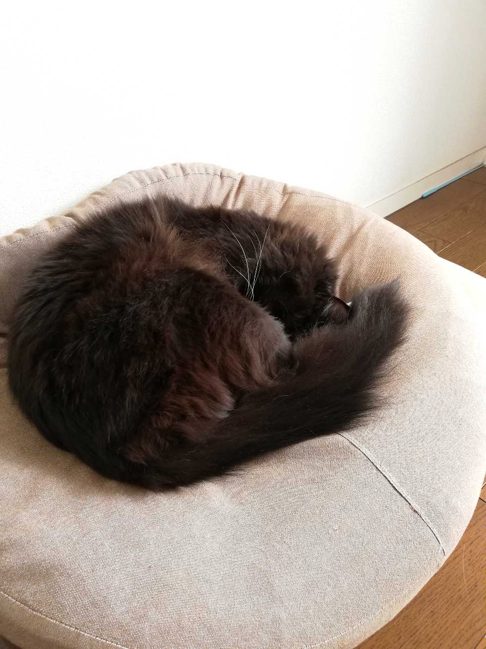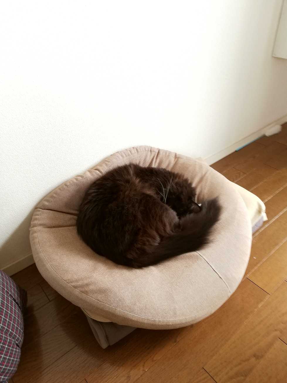 丸くなって寝ているくーちゃん。
