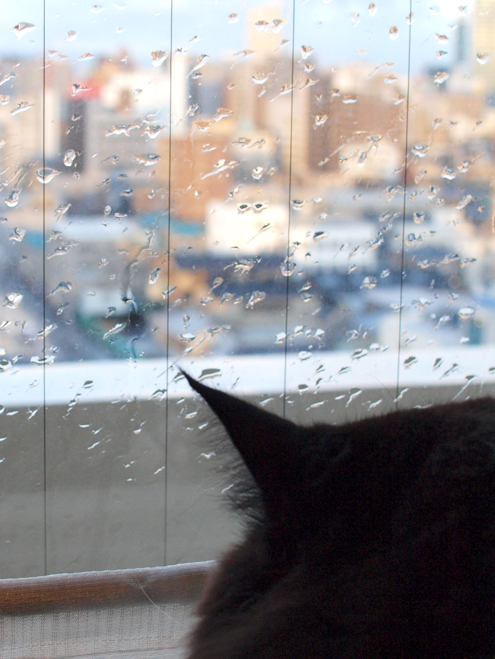 雨が窓ガラスに