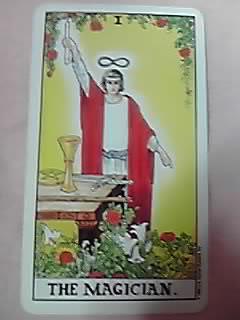「1 魔術師」彼は何かを決意し、具現化に向けてスタートしました。赤い薔薇はイエス・キリストであり、男性性の象徴、白い百合は聖母マリアであり、女性性の象徴です。同じく衣も赤と白です。男性性と女性性がバランスされた時、大いなる力を発揮します。机に並べられた4つの道具は感覚、感情、思考、直観を表します。同じくこの力をコントロール出来る地点に来たのです。そして個人の力を超えて宇宙とコネクトしているのが、頭上の無限記号、ワンドを持ち天と地を指す手からも解ります。受け取ったアイディアを地に下ろし、具現化するのです。まず最初に決意があるのだと思います。勝手にどこかに運んでもらうのではなく、良い悪いではなく、どうしたいかという意図をはっきりと持ち、宇宙に宣言するのです。その時に大いなる力のサポートがあると思います。腰に巻きつく、尾を噛むヘビは永遠に続く人の進化を表します。行動して経験する事により、学び、成長するのです。失敗は成功の素です。最初の一歩を踏み出す事により、物語はスタートします。どこに向かうか、今の時点では最後までは見えなくても、信念と共に進むのです。その途中では紆余曲折があり、方向転換する時も来るかもしれません。ただ表面的な違いがあっても、本質的な志が失われなければ、それはその人の道なのだと思います。以上が今の私が感じる「マジシャン」のストーリーですタロット教室大阪生徒募集中地下鉄中央線・堺筋線・堺筋本町駅より徒歩3分HP海月彩音 Therapy room 携帯サイトhttp://katy.jp/ayane-m/月~日10:30~20:30営業サロンスケジュール・ご予約方法1クリック応援お願いします!応援ありがとうございます♪