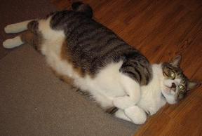昨日あたりから、窓を開けずに家の中で過ごすのが苦痛になってきました。そろそろ扇風機の出番?ちょっと前までヒーターを使っていたとは思えませんねぇ。やっとヒーター卒業できそうなにゃんたさん。今日も念入りに毛繕い中。足の裏を舐めるときは、こんな風に高く足が上がります。ちょっと休憩。にゃんたは毛繕い中、不自然なポーズで固まってることがよくあります。(2009,12,16)足、疲れないのかしら(^^;) ブログランキング参加中♪よろしければ応援クリックお願いします