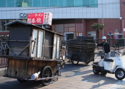 車やバイクやに引かれて、又は人力で、どこからともなく現れてきます。そして夜な夜な、各屋台ごとにドラマが繰り広けられるのです。ふふ。