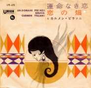 シングル国内盤US- 25映画「炎の男(UN UOMO DA BRUCIARE)」運命なき恋(UN DOMANI PER NOI)/恋の焔(BRUCIE)◆カルメン・ヴィラー二(CARMEN VILLANI)◆テイチク(UNION)当時発売時価格330円(1963年1月発売)の国内正規品です