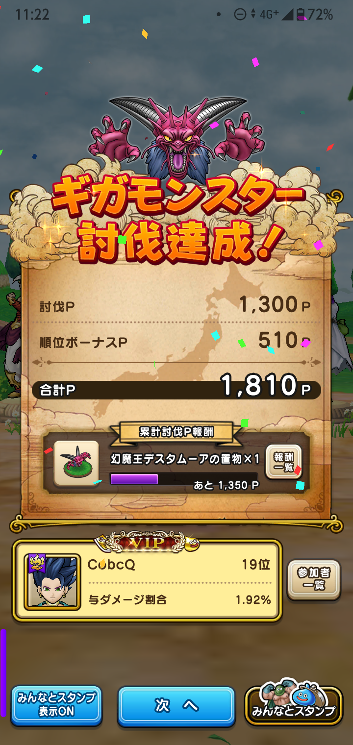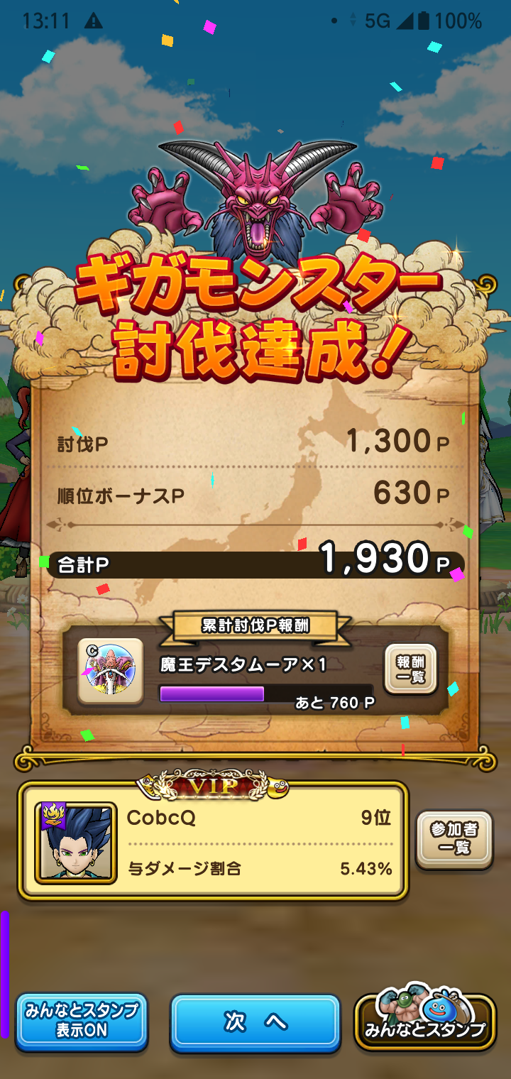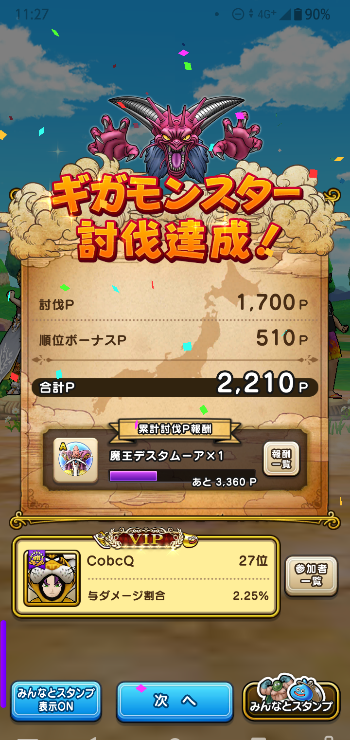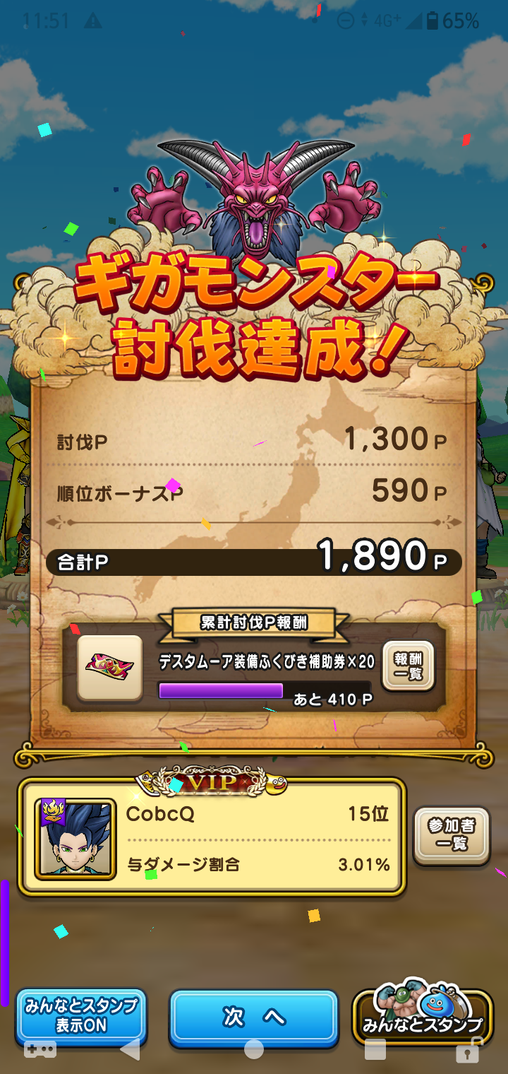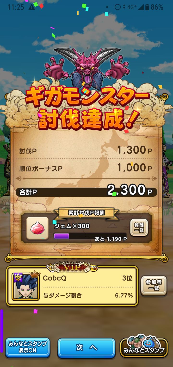 本日のギガモンスター討伐!メイン2回!サブ3回!間に合うか?!強い人は特ギガの行って欲しいのよね~!そいつぁよかった!