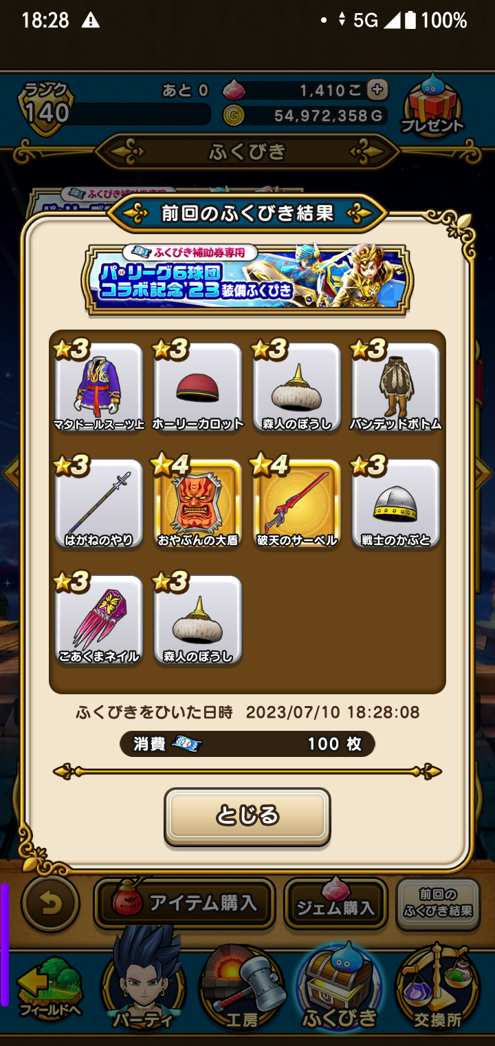 本日のメイン2!パ6球団コラボ記念ふくびき!天空のつるぎ勇者の盾頂きました!そいつぁよかった!