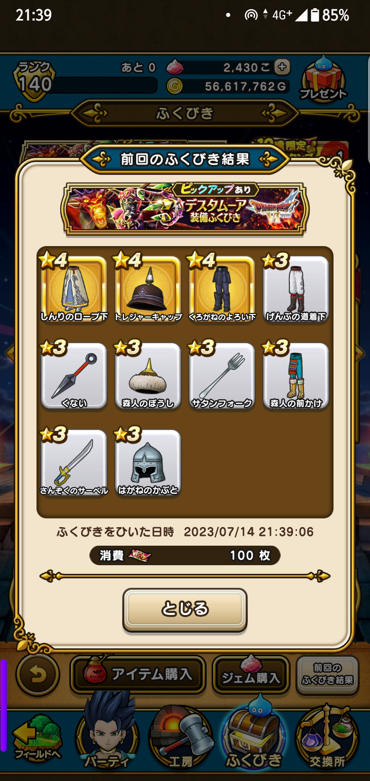 本日のサブ!王者の盾、幻魔王の鎧下が当たったけど!そいつぁよかった!