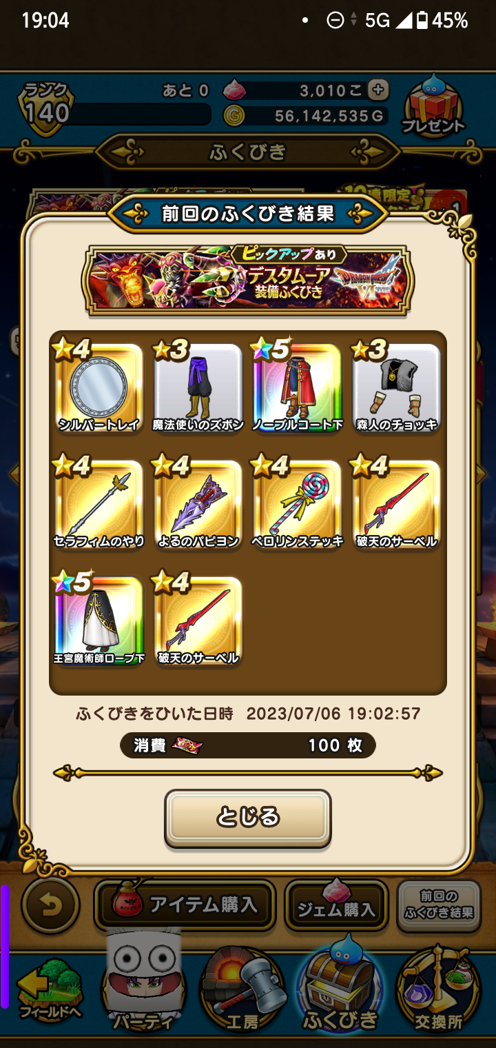 本日のメイン!ギガモンスター討伐2回!ふくびきは、ロトのつるぎ1個!そいつぁよかった!