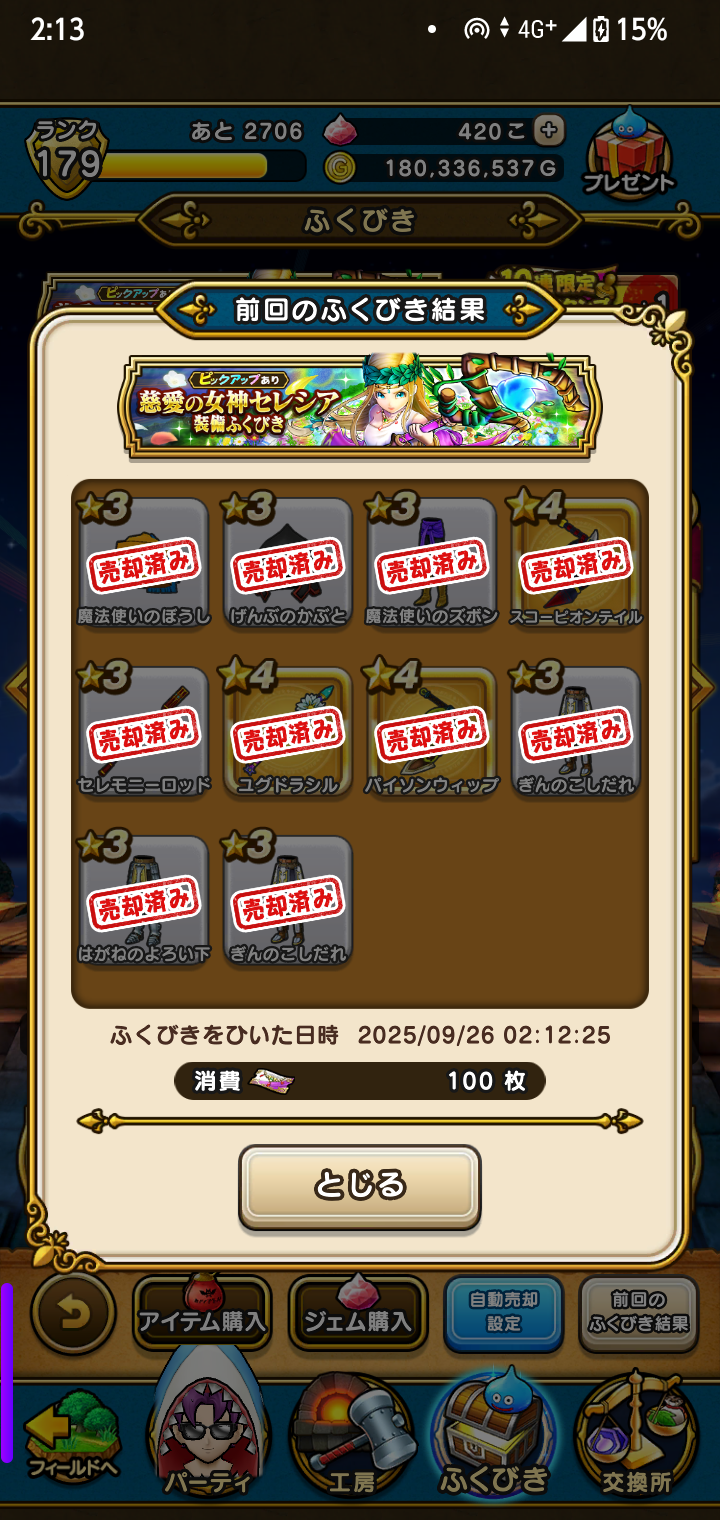 ドラゴンクエストウォーク!ドラクエウォーク!6周年記念おたから装備ふくびき!世界樹のベール【魔】!新!あぶない水着'23下!新!☆5装備2つ!10連×182回=1820連で、☆5装備は、128個に!☆5装備出現率は、7.032967%!7%を超えました!そいつぁよかった!ドラゴンクエストウォーク 公式ファンブック 5th Anniversary [ スクウェア・エニックス ]