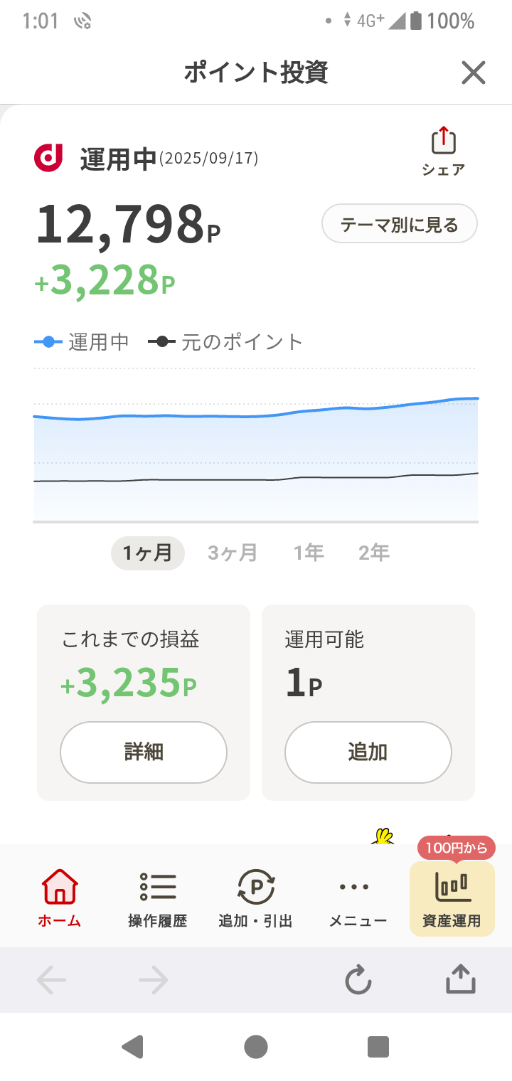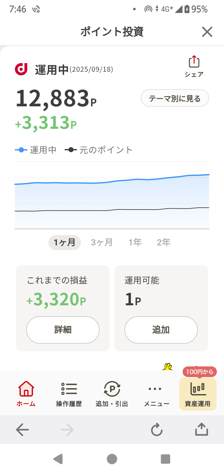 ポイ活!ポイント運用!dポイント、変動なし!楽天ポイント!利息プラス、14P追加!ポイント運用、変動なし!ポイントビットコイン、22P減!ポイント楽天株、変動なし!合計、8ポイント減りました!6日ぶりに、減っちゃった!土日祝日は、ポイントビットコインしか、動かないからね!そいつぁよかった!楽天ポイントが毎日貯まる 体重計【楽天1位】AIアドバイス スマホ連動 体組成計 AI体重計 体脂肪率 家電 ポイ活体重計 薄型 シンプル bluetooth 高性能 アプリ デジタル おすすめ 内臓脂肪 体脂肪計 ダイエット 高精度 ※最大3年保証