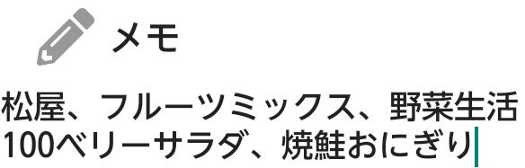 松屋の朝食、ファミマのフルーツミックス、野菜生活100ベリーサラダ、まいばすけっとの焼鮭のおにぎりで、コンプリート!
