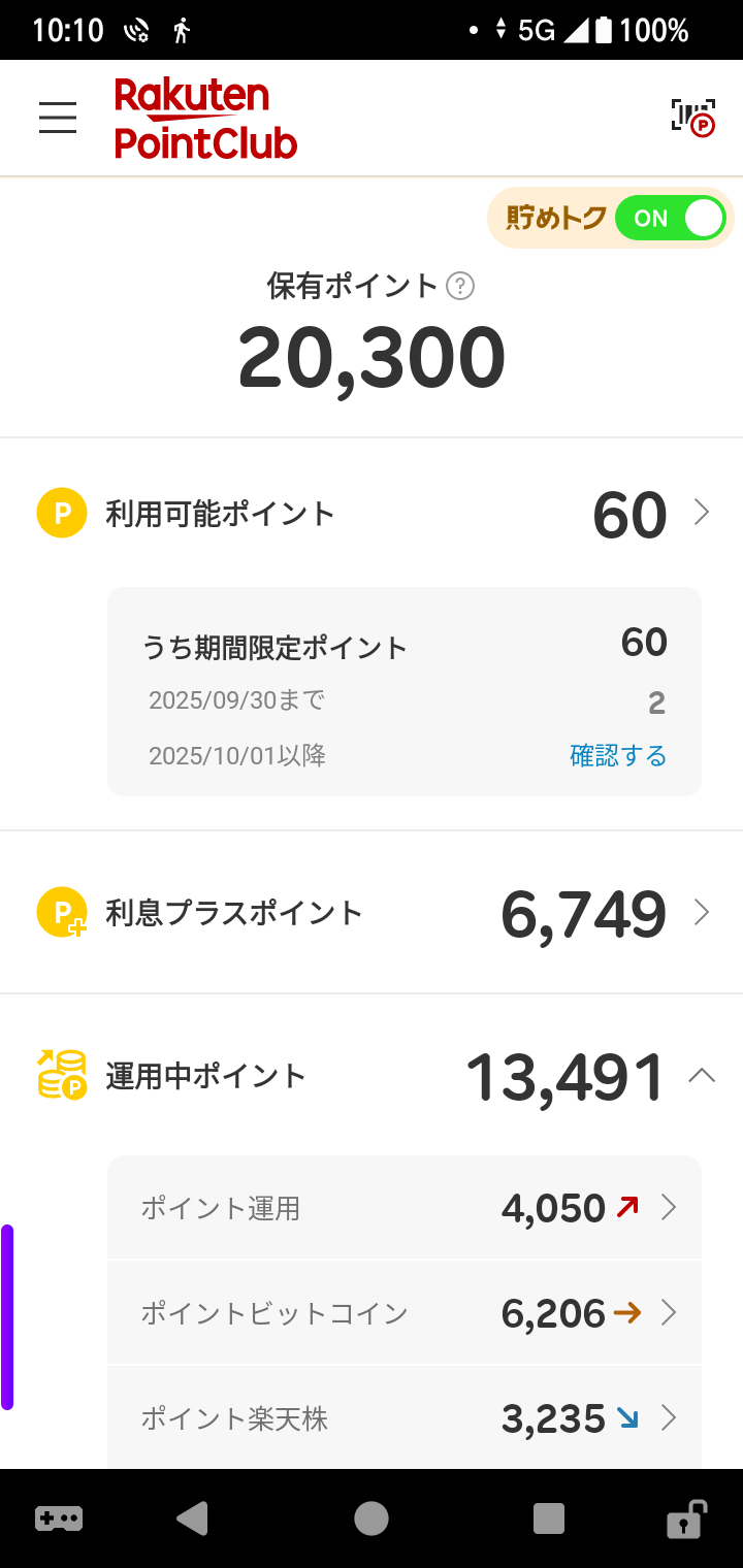 ポイント運用、5P増!