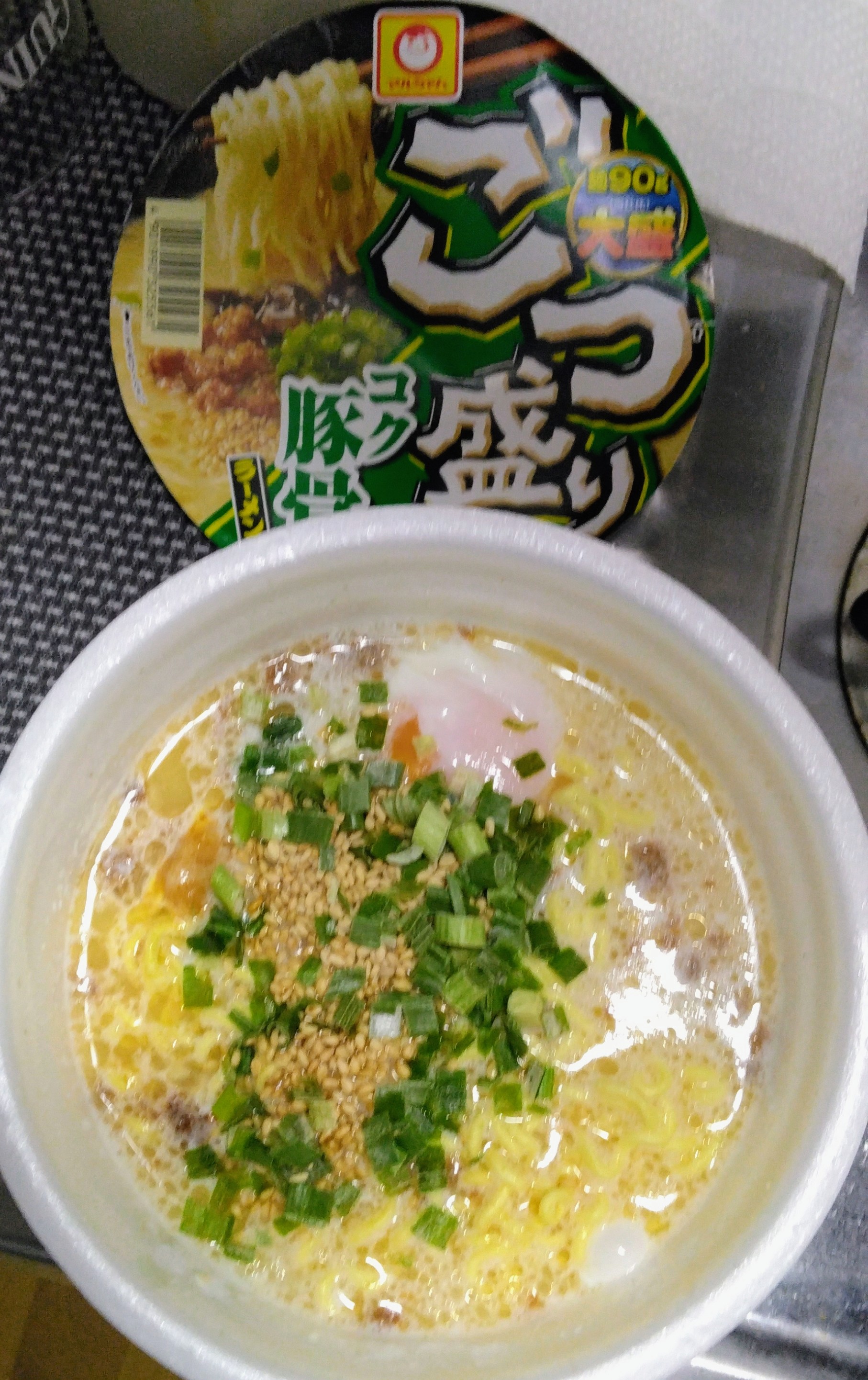 夜、ごつ盛りコク豚骨ラーメン、たまご(卵)!