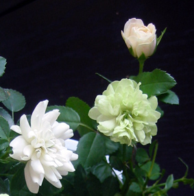 昨日ミニバラ の グリーンアイスを買っちゃいました~ いつもの近所の花屋の前を通ると・・・見つけてしまった~ 蕾から咲き始めはベビーピンク そして白に、更に咲き進むと淡いグリーンに変化するミニバラで~す 3色見れてお得な感じ~ カワイっ 9/6にハダニ攻撃にあっていたアンドレアさんはなんとか回復して来ています 今日は気持ちのいい秋晴れ~ 昨日降るって予報だったのに降らなかった・・・明日は降りそうですけどね 気づくと30000HITを超えている~ キリ番は210.133**の方でした 20000HIT記念の高芽もまだ送れていないので今回はイベント無しでっす でもこれからもどうぞ宜しくお願いします そうそう、昨晩あのにっくきゴ○が出て来たぁ~ 3日前から捕獲出来てなかったのぉ~ ココからはゴ○との戦いのお話です~ 7時頃、フラフラ~っと廊下を歩いてた・・・でぎゃぁ~~~~~ 怖かったけど、じぃーっとにらめっこ・・・で、奴はとことこキッチンへ・・・ でもホイホイの有る所は避けて通りやがる さすが、大きいだけあって(5~6cmはある)頭がイイよーって褒めてる場合 でもなく、殺虫剤と泡で固めるの両方持って追いかけ回すとリビングのソファーの下 に潜り込んだ クッソォー、殺虫剤攻撃だシューーーーーーーーーーーーっ 出て来てゴミ箱の側面を登り始めたので反対方向に廻り、ゴ○パオを噴射しよう としたら一瞬で姿が見えない・・・ ゴミ箱の中に入ったと直ぐさま大きいゴミ袋でゴミ箱ごと包んでベランダに ほーーーっ 後は相方が帰って来てからチェックしてもらおぅ~ でも何となく不安がよぎる・・・「あのゴミ箱の中に入っていなかったら・・・ どーしよっ」 万が一を考え、パソコン部屋の扉を閉めて9時頃まで閉じこもっていたのですが シンクロ見るの忘れてた~って事でリビングへ・・・まだなんとわなしに不安 何気にフッと天井を見たら・・・イターーーーーーーーっ 発見 天井にへばりついているなんてーーーやっぱりゴミ箱じゃ無かったのね 触覚(?)みたいなのを動かしながらじーっとくつろいでる感じ・・・・ ココはもう、最終決戦しかないでしょー (でも飛んだらどーしよ?ってちょっと ひるんだ・・・怖い~) ゴ○パオ(殺虫剤でなく泡で包んで固めてしまう)の噴射角度をチェックして、 いざっ 発射準備おっけいー 発射 ブシューーーーーーー やったーーーー大成功 天井でもあまり飛び散らない 固まってゴムみたいになるのでピリピリ~っと剥がすだけ 取るのは相方にって思っている時に限って帰宅は12時・・・でも帰って来てすぐ取って もらいましたー あぁ、長っ しょうもないお話につき合ってくださって有り難うございました