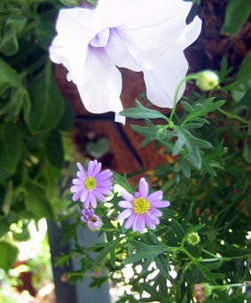 ブラキカム、頑張って咲いていますが・・・ペチュニアのハンギングに 入れない方が良かった お花の大きさが違い過ぎますね 失敗 伸ばし放題になっていますが・・・ トレニアも伸ばし放題でほったらかし・・・でも蕾もまだまだ沢山付けて 咲き続けています~病気しらずで手間イラズの良い子ですね 春に植えた子達ですがまだまだがんばっています~ 9/18のハツカダイコン、10cm以上に伸びて来たので1/3程間引きしました~ 洗って食べてみると見た目も味もカイワレダイコン とんこつラーメンに入れて食べました~ウマっ 今日は朝から相方と麻雀ゲーム等してダラダラ~ で、もうこんな時間・・・ゲームってやりだすと時間が経つのが早過ぎですね