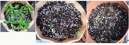名無し、3pot100円のビオラが旺盛になって来ました 後ろにはチューリップを植えてあります なんだか今回はビオラと球根が例年より多いなー ラベンダー色のスィートアリッサムもまんまるに成って来ました 上のビオラは 徒長ぎみだったので切り戻して、ちょぼちょぼお花が咲き出しました 最近お天気が悪いので、皆、成育がイマイチ 相変わらず種蒔きの苗は成長止まっているかの様で ちびっこいまんまでっす・・・・ 今日は予定通り朝から雨でお昼には止みましたが、どんより曇り空 風も強くてヒューヒューです 昨晩は2人共酔っぱらって、(何時ベットに潜り込んだのか記憶無し) 目覚ましかげずに寝たら1時間寝坊~ よってお弁当はお休みにしてもらいました そうそう、昨日のハバネロカレーは職場の人に味見させてあげたらしい 「辛~~~、でもウマ~」だったって
