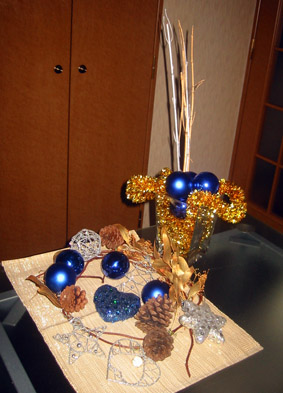 10/6に作った寄せ植えにX'masの飾りを付けてみました ちょっと気が早いかも~アハハ~ でもちまたの花屋さんなんかはもうX'masですもんね~ お部屋のツリーも出して来ちゃいました 我が家のツリーはLEDと光ファイバーのツリー ブルーのLEDと光ファイバーが黄色→赤→緑と色が変わってチカチカ するので飾りは一切無しで光りを楽しんでいます 真っ暗にすると本当に綺麗で、とってもいいムードになります ムード良過ぎてアルコールの量が増えますが・・・