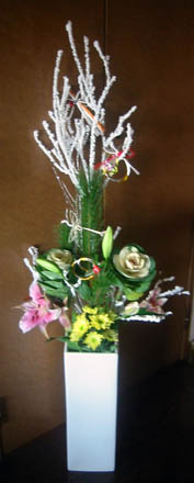 11/14X'masの寄せ植えに飾り付け♪ の飾りをお正月バージョンにしてみました寄せ植え、ちょこっと飾りを替えるだけで楽しませてくれますねピンクのガーデンシクラメンが蕾は上がって来ているけどストックに押され気味なのかお花が減って来ました・・・赤いのは旺盛で常に5本程お花があるのになー お部屋の中もお正月用のアレンジを作ってみました 玄関用 リビング用 玄関用は高さ1m40cm リビング用は蘭で一杯なので40cm程 適当に生けたのでバランス悪いなー 昨日は相方と4時間大掃除~ まだ終わっていないので今日も夕方まで掃除三昧・・・ 明日は母と叔母が来てお餅つき6kg&相方特製串カツパーティです