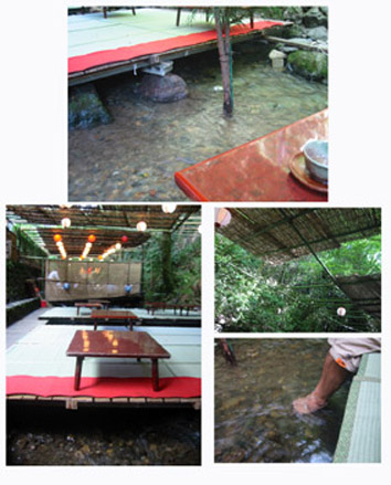 山の貴船川の上に床(ゆか)を作ってそこで食事するのでーす