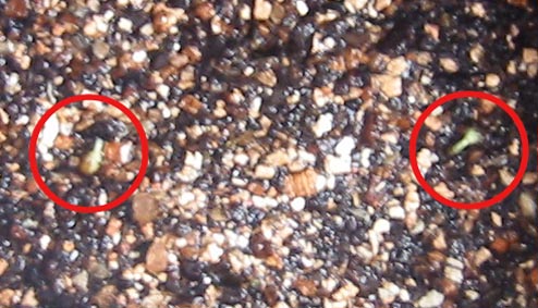 そして・・・ 昨日蒔いた紅白はつか大根 はもう発根してましたーびっくり