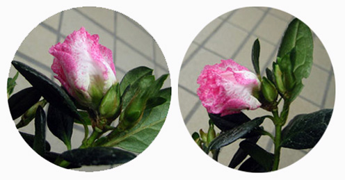 花びらのピンク部分はピンクの点の集合体で