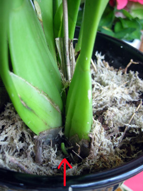 新芽だったら出る方向が・・・ バルブの右側に出てもらわないと