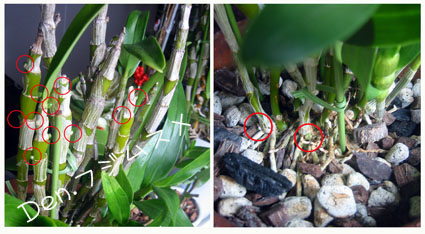 新バルブは親より小さかったのですが新芽も新根も出始めて来ていて、