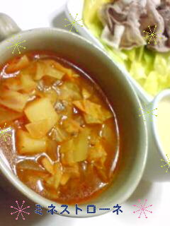 ( ゚▽゚)/こんばんわ 風邪とかインフルが流行ってますね・・・ウチもcocoが風邪を引いたみたいで、鼻水と咳が出てます。。。昨日の夜中にcocoが咳き込んでしまって、そのまま吐いたりしてとっても大変でした(*´-ω-`)・・・フゥ マスクをして寝たら大丈夫になって、朝は元気に『いってきま~~~す♪』と保育園に行きました皆さんも気をつけてくださいね!!今日も寒いのでお家にある野菜をいっぱい使ってミネストローネを作りました春雨スープとかでもよかったなぁ~・・・ウンウン♪今度はそうしよううふ♪(* ̄ω ̄)v あと明日の朝ごはん用に中華丼の具を作りました『朝からどんぶり(゜ロ゜)ギョェ 』って感じかもだけど中華丼ならよくない^^???揚げ物とか使ってないしね!野菜もたっぷりで、簡単だしさ~( ̄~; ̄) ムシャムシャ お義母さんからいっぱい「うずらの卵」もらったからきっと旦那も大喜びだねぇ~あっ。。。旦那といえば・・・・グチで~~~~す。。。。。最近ちょっと育児放棄気味なんだよねぇ~。。。家に帰ると自分のしたいことばかり。。。。撮り溜めしてるドラマ見たり、映画見たり、漫画見たり。。。とにかくずっと自分の部屋に引きこもってるの【#・∀・】ムカムカ 家族揃うのなんて夕食の時のみ!って感じなんだよ~。。。ご飯食べたら『タバコ吸ってくる~♪』なんて言いながらまた2階に上がって行くんだから~!!!別に私は育児が面倒くさくて言ってるのではなくて子供ともっとコミュニケーションとってほしんだよね~。。。なのにcocoの保育園の新年会とかそういうのには『cocoのためにこういうのには参加しないとね^^』なんて言ってさぁ~。。。(ただみんなと楽しく飲みたいだけジャン!)自分の都合のいい事だけしてるって感じ。。。まぁ~こういうコト言うとまたプンプン怒るのでケンカになっても面倒くさいし、子供のために良くないし、『プンプン!そんなん言うなら、もう実家に帰るからな!!』なんて言われたら1番面倒くさいし。。。。。何気~に柔らか~く言うのダケド・・・。。。本当、子供が3人いるみたいだわ~。。。。この前は脱衣場に着替え置いてなかったら『ふざけんなよ~。。。ちゃんとパジャマ持ってきといてよ!』って、mocaのオムツ換えたり抱っこしたり・・・とどう見ても忙しそうな私を見ながら言うんだからマジで呆れちゃったよ~。。。。。。えぇ~・・・??みんなんちもこんなものなの~@@???*sae*