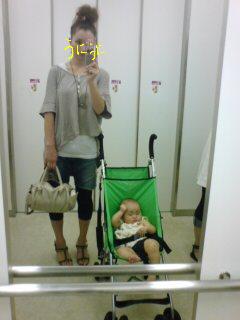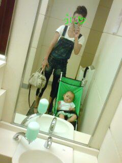 こんにちは~^^のりピー・・・どうしちゃったの@@???逃げた時点で怪しいとは思ってたけど・・・残念。。。子供がかわいそうだよね・・・・;;あのね、日曜日保育園のクラス会(親子会)があるの去年は私が役員だったけど、どういう会にしたらみんなが楽しめるか本当に頑張って考えていろいろアンケートを取ったりして、楽しかったけど疲れました今年のは役員さんはちょっとヒドイ。。。すごい手抜きです。。。。日曜日のクラス会はバーベQなんだけど、肉も野菜もお皿もタレもすべて各家庭で用意なんだよ~。。。バーベQセットもウチが用意しないといけないしなんかもう準備とか面倒くさいし、子供の事なんだから『あっちの家のご飯がいいwww><』なんて言いかねないよね???なんか気が重たいです。。。。(ってか本当面倒くさい。。。)今日はその準備?でちょっと隣の県までドライブしてきました隣の県っていっても、ウチは県境に住んでるので・・・・ちょっと走れば隣の県になるわけで^^;今日は2年くらい前に買ってクローゼットに眠っていたサロペを(洗濯して)着てみた~^^トイレで撮ってみました(笑)カバンは斜め掛けも出来るやつです^^ハッシュアッシュで見つけました♪セールで1500円くらいでゲット♪形もスキで、(たぶん定価でも見つけてたら買ってたカモ♪)オムツも入るし、最近かなりお気に入りデス♪あとはグラディエーター履いたけど、今日はもう立秋だしショートブーツ(emu)でもよかったかも^^???ハヤイ???横には7ヶ月のmocaがいます・・・・今日はハニーズに寄って、秋口に着られそうな服を買ってきましたハニーズって本当安い@@♪そこの店員さん可愛かったしwwまた時間があればオシャレブログも書きたいけどな・・・><またまた~