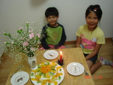 火曜日 ゆん姉の参観日があった。小3なので 今年で3回目。毎年 運動場には バザーが開催され 軽食が販売される。バザーするのも 軽食を作って売るのも みんな 子供たちの母親。各クラスのオンマ会(=母会)の 会長と副会長がやる。そして 今年のゆん姉のクラスの参観日の授業だけど あれは なんの授業だったのかなあ~???参観日の前日に出た宿題をテーマにした授業だったんだけど 少し変わった宿題だった。「母親が子供に作る 魔法の薬」というテーマで、どういう効果のある魔法の薬か? その薬で注意する事、その注意を守らないと どうなるか?という内容で その内容は 参加日当日まで 子供達には見せてはいけない という、なかなか面白い宿題だった。で 参観日当日 6組のグループに分かれて、その机の上に 数種類の飲み物(オレンジジュースやコーラ、牛乳 etc・・)、数種類の粉(ココア、砂糖、きな粉 etc・・)が 各机の上に置かれていて それで 母親が 子供たちに「魔法の薬」を作ってあげる。結構 まずくなったけど ゆん姉 「おいしい♪」って どんな味覚やら・・・(;^_^Aそして その薬を飲んで 自分がどういう風になったか絵を描いて 一人づつ発表した。全員は 発表出来なかったんだけど 韓国オンマ達の考えた魔法の薬は・・・まず 小さかったり細かった子は 「ご飯が沢山食べれる魔法の薬」「背が高くなる魔法の薬」あとは 「勉強が出来るようになる魔法の薬」「兄弟喧嘩しない魔法のお薬」などなどみなさんだったら どんな「魔法のお薬」を作ってあげますか?そして 私の考えた魔法の薬は ゆん姉が小さかった頃の夢が 「ちょうちょ」「妖精」だったので 『飲むと 背中から妖精の羽が生えてくる魔法のお薬』更に 注意を守らないと 「体が緑になる」・・・ゆん姉は 残念ながら 発表出来なかったんだけど 他の子の魔法の薬を聞いて なんだか 私の魔法の薬を発表したら ちょっと浮いた・・・かも(;^_^Aそうそう この参加日の準備物だった宿題とオレンジジュース ゆん姉 両方 忘れて学校へ行った おかげで 学校へ二回行ったわ=でも まあ 今回の参観日 退屈する事なく とっても 面白かった☆参観日後は 韓国オンマ達と バザー見て ククス(温そうめん)を食べて帰った。