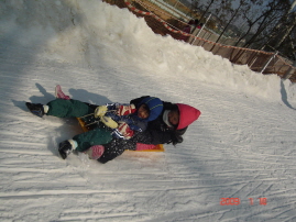 先週の金曜日夜 2泊3日のスキーキャンプから 小4ゆん姉 ご機嫌でお家に帰ってきました♪想像以上に楽しかった様で あと一ヶ月位 滞在して スキーをしたかった程。あと 夜には 3日間 一緒に過ごしたお友達に会いたい・・・と 涙ポロポロが 次の日には 友達のことは忘れたのか な~んにも言わなくなった(;^_^A あれぇ?そして 一番 お姉ちゃんの帰りを待っていたてん君 お姉ちゃんより お土産に(残りの)チョコレートを貰い 更に ルンルンスキー場に スキーをしてるサンタさんがいて チョコレート50個位貰ったゆん姉。(クリスマス とっとくに終わってるちゅーのに・・・)てん君に 10個位残ってた(;^_^♪ゆん姉 本当楽しい3日間だった様。携帯の画像を見たら 本当 ご馳走たくさ~んおいしい物大好きなゆん姉は 朝のブッフェや 夜のブッフェ 大好きなハンバーグディナー 夜食のチキンやピザや・・・間食のジュースやお菓子 チョコレート 色々貰って 相当 おいしい思いをした様。あと 小4の子4人との同室では いっぱいお喋りして、テレビ見放題 夜12時まで みんなでテレビを見て 騒いで遊んでたそう。でも 一番楽しかったのは スキーだったみたい最初は 怖いし こけて痛いし・・・だったらしいけど 途中から 少しづつ 上手に滑れるようになった様。3日間 毎日 たっぷりスキーをした様子。インストラクターの先生に怒られて それも怖かったらしいけど、携帯見たら 先生とのメールのやりとりも沢山して なんか 仲良くなってたみたいだし。また 我が家は 賑やかになり ゆんとてんの笑い声が響く毎日となったわけだけど・・・ちょっと うるさすぎー新生児の赤ちゃんがもうすぐ生まれて このうるささ・・・せっかく寝かしつけても 起こされるんじゃないか・・・と なんか 心配になってきた(;^_^Aお姉ちゃんのいない3日間 てん君と遊んであげてたつもりだけど 二人が遊んでる姿を見て あれ位では 遊んであげてたうちに入らないな・・・と。やっぱり 子供同士 エンドレスで遊ぶ姿を見て 姉弟って 本当いいなぁ~♪と。てん君の嬉しそうな声が 響く響くうるさいけれど これで 私も ゆっく~り昼寝が出来る・・・(?)退屈だったてん君 「ママ お昼寝するね・・」と言ってるにも関わらず ベットの隣に椅子持って来てすわり 「じゃあ 絵本読んであげるね♪」・・・と。臨月の私 夜 足がだるくて なかなか寝付けないは 上見て寝てたら 苦しいは、夜中は おトイレで 何度も目が覚める。朝は パパの朝ごはんで6時起き。でも お昼寝は ベットで横になると もう 数秒で寝れるんだけど てん君が・・・「ねぇ ママ 聞いてる? 聞いてる? ここからが すごいよ~」「・・・うん・・・全部 聞いてるよ。ママ そのお話 よく知ってるし・・・」と 適当に相槌をうっても・・・「ねぇ!!ママ! 見て!この絵 見て!! この絵 すごいよー 見てぇー」頑張って 目を開けて うっすら 本をこっちに見せる てん君の姿が・・・・が その後 とうとう意識がなくなった私・・・(;^_^Aそして 次 目が冷めた時は てん君 「ママ~ てん 水泳行ってくるね~♪」 と、水泳カバン持って ジャンバー着て 手をふるてん君の姿が・・・ちゃ~んと 時間見て 用意して いつもの時間に出て行った。「いってきま~す♪」と 出て行ったてん君・・・成長したなぁ~・・とさて てん君 お姉ちゃんがいない3日間を過ごした訳だけど、お次は ママがいない3日間を過ごす事になる。韓国は 出産して入院が2泊3日。きっと お姉ちゃんいるし 二人で大丈夫だろうなぁ。とりあえず ゆん姉がいない時に 出産入院する事にならず良かった♪出産考えると 恐ろしいので さっさっ と、終わらせたい=予定日は 今週金曜日。お腹の赤ちゃん 早く出ておいで~パパもママもお姉ちゃんもお兄ちゃんも みんな 首をなが~くして待ってるよぉ~♪♪♪準備万端=レンタルでベビーベットも届いたので いつ生まれてもOK