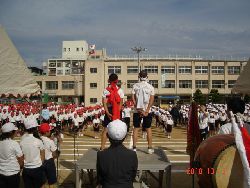 日曜日の運動会 雨で 午後から中止になったので 月曜日の今日 午前中に残りのプログラムがあった。私と父が楽しみにしていたのは ゆん姉が朝礼台に立って 進行係を務める所。↓左がゆん姉で~す♪全校生徒の『大玉ころがし』の時に 進行係のゆん姉と友達が ゲームの説明と進行を。出番前に 「緊張しない?」と、ゆん姉に聞くと 「むしろワクワクする♪ よーいドン と、言う所で みんながこっちを必死で見てるのがおもしろい☆」だって。今どきの子って 本当緊張しないみたいで ゆん姉も友達も 落ち着いて喋り 関心した。う~ん ゆん姉って わが子ながら すご~い何がって 積極的でチャレンジャー。自分が小学校の時 こういうのやりたくないタイプだっただけに 余計・・・去年も転校一ヶ月目で 運動会の応援団のチアーしてたし。もしかして 目立ち・・・?ちなみに てん君に 「てん君も 6年生になったら応援団長したら。」って言ったら「やだやだ 無理無理。恥ずかしい~ 」だって 笑って 結構これが普通だわね(うん、私の子だ)。っていうか 応援団長なんて そう簡単になれないんだけどね=今日は 本当にいいお天気で 運動会日和だった今日も 末っ子ちゃんは ウロウロ ウロウロ~知り合いの子供のママさん達に会って 喋ってても すぐあちこち行くので ゆっくり話す暇もなく^_^;さて 問題↑ この普通の運動会の景色の中に 何か別のものが・・・・正解は この日記の最後で・・・♪そうそう 今日 すっごーく やばーい事になりそうな事があった5年生のリレー中 末っ子ちゃん 運動場の隅で遊ばせながら リレーをチラチラ見てたんだけど ふっ、と 末っ子ちゃん見ると・・・「いない!!」目を離したのは ほんの数秒=視界から消えて 「ええっー!! 」と、思って 振り向くと 子供達の合間をぬって リレー中の運動場にまっしぐらに走ってるーーー ぎゃああああーーーーん猛ダッシュで捕まえて 本当 ギリギリギリギリで セーフみんな必死で走ってるリレーの最中に 末っ子ちゃんが現れたりしたら 危ないのはもちろん かなりのブーイングで えらい事になる所だった~あぁ~ 何事も起こらなくて 本当良かった ともかく 無事 運動会が終わって 本当 良かった♪良かった♪運動会の赤白組の点数の結果は 赤組の優勝で 赤組のてん君大喜び正直 今年運動会が最後で まだ優勝を味わった事のないゆん姉の白組の優勝を望んでたので ちょっと・・・いや 結構 悔しい~~~~そうそう 問題の答え画像の下の方で お兄ちゃんの席の前で 末っ子ちゃん 砂をいじいじ触って遊んでます簡単すぎたかな~ 笑