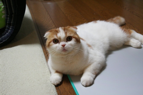 夜になって買い物&散髪から戻ってきた旦那と息子が、お土産でココにアルミシートを買ってきました。「ほら、お土産だよ~」そう言いながら、旦那がシートを床に置くと、とことことことやってきてクンクンクン。匂いを嗅いでるな~と思ったら早速ペタリ。あ~ら~(@o@)もう少し警戒すると思ったので、あまりの早さにびっくりしました~(wけど、お気に召していただけたようでなによりでございますところで、手術の傷もすっかり良くなり、刈られた毛も伸びてきました(wその代わりに暑さが増してきたんでしょうね。少し前までカーペット大好きだったのに、最近はもっぱらフローリングの上にぐで~っと転がってますそれにしても、息子が撮影すると姫ってばいい顔するなあ……なんとなくじぇらしー……
