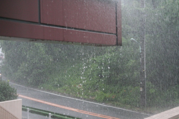 今日は朝から晴れ!最高気温も35度近くまで上がってる~~~!と驚いてると、だんだん怪しげな雲が~~~これは降るなあと思っていたら、案の定14時半ごろからものすごーーーーーーーーーく久々に、まるでバケツをひっくり返したような土砂降り!!坂の側溝から水がどんどん溢れ出し、道路はまるで川。車もみんなのろのろ運転です。ここまですごい土砂降りは本当に久し振りなような…。多摩川や浅川で被害が出てなきゃいいのだけど(^^;雷もすごかったあ!土砂降りの雨をココに見せようと、抱き上げて網戸から外を見たそのタイミングでドッカーーーーーーーーン!その瞬間、思いっきり私の体を蹴飛ばし、腕の中から逃げ出しましたとも、姫。私もビビりましたっ姫、テーブルの下に縮こまって警戒モードです。それでも、押し入れに逃げ込むことはしないんだあ。それに、蹴飛ばされたときも爪痛くなかった♪ちょっと感心嵐が通り過ぎるまで、かかった時間は30分くらいだったでしょうか。少しずつ雨が弱まり、通り過ぎた後はまた晴れ35度近くまで上がっていた外気温も、雨のおかげでずいぶん涼しくなりましたよとかのたのた打ち込んでる間にまた曇って来た。。。>現在16:30気象庁レーダー見ると、これからまた降りそうな感じです(この時間は都心の方が土砂降りなんですね。被害が出てないことを祈ります^^;)今週あたりからニイニイゼミやヒグラシも鳴き始めましたし、だんだん本格的な夏が近づいてきましたねぇ…。