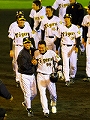 球界他事ログ 猛虎特別号=2007年4月21日(土曜日)先勝=本ブログはプロ野球関連記事を読んで、私的感想、批評、罵声、反省を書いて行きます(編集人:G一筋ウン十年 末裔まで巨人な古馬道)奇跡の大逆転!狩野劇的サヨナラ打=2007年4月21日 デイリースポーツ= 奇跡が起こった!20日の巨人戦、3点リードされた敗色濃厚の延長十二回だ。阪神は鳥谷の2点二塁打と赤星の適時打で同点。そして二死満塁の好機に、代打で登場したのがプロ7年目、まだ1軍で1本もヒットがなかった狩野恵輔(24)。レフト左を破るサヨナラ打が弾む!うれしいうれしい初安打、夢にまで見たお立ち台。きょうという日を生涯忘れない。 いくら野球やいうても筋書きなさすぎ!!そやけど、マジでオモロすぎ!!奇跡の打球が、左翼で跳ねた。狩野が何とプロ初安打を、とんでもない代打サヨナラ打で決めてしまった。狂喜の猛虎ナインが一斉にベンチを飛び出し“主役”を追いかけた。あっという間に巻き込んだら、この野郎!!もうボコボコやあ!! さすがに、いつもはクールに出迎える岡田監督も興奮。その目は真っ赤だった。誰が投げ込んだか、左翼席に入ってしまっていたサヨナラ球を、関本が受け取りに向かう。すると、殊勲の若虎のために“宝物”を取り置いていたファンが、グラウンドに投げ返す。甲子園が感動でまた沸いた。...[記事本文]阪神12回逆転!狩野プロ初安打がサヨナラ=2007年4月21日 大阪ニッカンスポーツ= 狩野、男だ! 阪神狩野恵輔捕手(24)が、巨人との伝統の一戦でミラクル劇の主役になった。1-1の延長12回表、失策などで巨人が3点を勝ち越し。だがその裏、守護神・豊田を攻め、1死一、二塁から鳥谷が2点適時二塁打、続く赤星の右前適時打でついに同点。その後2死一、二塁から巨人は満塁にしても今岡を敬遠の策を選択。その場面で今季初打席の代打狩野が、鮮やかに左翼へサヨナラヒットを放った。狩野にとってプロ7年目の初安打が劇的打。阪神が奇跡的な勝利で貯金を1とし、3位に再浮上した。 「無我夢中でした。これが初ヒットなんですけど、こんないい場面で打ててうれしいです。最高です。今岡さんが敬遠されて、絶対に打ってやろうと思っていました」 初体験のお立ち台で、祝福の歓声を一身に浴びた。今季の初打席。プロ通算で8度目の打席は、とんでもない場面で回ってきた。 ベンチを出る前に、狩野は岡田監督に呼び止められた。プロ入りから2年間、体作りに励んだ2軍で監督をしていた指揮官から「ストレートだけを思い切って振ってこい」と檄(げき)を飛ばされた。フォークだったが、初球から思い切って振った。自然に肩の力が抜けたという。 「監督の言葉で楽になったし、ファームからチャンスで見逃すのだけが嫌だった。2球目は初球より高めに来た。思い切りです」。 岡田監督は「最後がプロ入り初安打でな、狩野が本当に…。こういう野球もあるということ。きょうは狩野のこと、書いたってくれや」と声を震わせた。入団時から育成した若トラが、大きな勝利をもたらしてくれた。前夜はナゴヤドームで、中日に6点差をひっくり返される悪夢を見せられたばかり。この日は「負けてたまるか」という執念が狩野の全身も包んでいた。...[記事全文]阪神「JFK」不敗神話!奇跡へリレー=2007年4月21日 大阪ニッカンスポーツ= この3人が投げれば、やはり負けない。今季8試合目の「JFK」揃い踏み。延長12回に決定的な3点を奪われても奇跡的な逆転劇で不敗神話は生き残った。 1-1の同点に追いつくと、岡田監督は迷わず動いた。8回、まずはウィリアムスが3人でピシャリ。そして続く9回は守護神を投入した。19日はへんとう腺炎で名古屋から緊急帰阪した藤川。20日の試合前練習も参加はしたが軽く体を動かしただけだった。 「熱が出たからなあ。軽くランニングとキャッチボールしただけやしな。できれば無理はさせたくないな」。試合前に岡田監督は心配顔で話していたが、こういう展開なら腹をくくるしかない。指揮官の期待に藤川は見事にこたえた。鬼気迫るピッチングは久保田に受け継がれた。 19日の中日戦では1点リードの7回に3点を奪われた。今季初の失点で逆転負けの責任を一身に背負った。しかし、首脳陣の信頼はこれぐらいでは揺らがない。3連投となった20日のも150キロ台を連発。4三振を奪う力強い内容で2イニングを抑え、リベンジを果たした。前夜は結果的に久保田が逆転打を浴び、負け投手となった。しかし、そこで崩れてしまうほどヤワじゃない。「3本の矢」の話と同じだ。3人が束になってかかれば、絶対に折れない。奇跡のサヨナラ勝ちは「JFK」の復活祭でもあった。...[記事全文]◆他の阪神PICK UP記事└【報知】狩野、大仕事!プロ初安打がサヨナラ打└【サンスポ】阪神が逆転サヨナラ勝ち!7年目・狩野、プロ初安打が劇的打└【スポニチ】代打・狩野 プロ初安打がサヨナラ打!└【大阪ニッカン】阪神星野SD、逆転サヨナラ勝ち観戦└【デイリー】虎の1、2番コンビが劇勝お膳立て※掲載情報の著作権は
