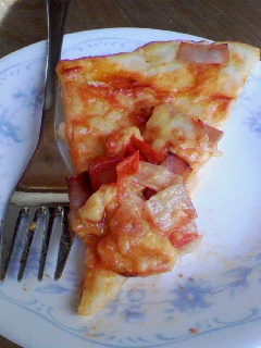 午前中、まさに春の嵐。強い雨と風でした。昨日、PTAの会議がありました。私は書記。会議の様子をお手紙にして発行するのが、お仕事です。今回、そのお手紙原稿の担当。雨の音を聞きながら、せっせと文面をタイプしておりました。お昼前には、雨もあがり、お仕事もひとまず終了。午後は、娘と買い物に行く約束。その前にお昼ご飯の支度です。娘がピザが食べたい、と言うので、ピザに決定。デリバリーを頼んでもいいのですが、今日はチーズや材料がそろっていたので、家で作ることに。我が家にあるホームベーカリーで、45分もあれば、生地が出来上がります。ホームベーカリーが生地をこねている間に、ソースや具の用意。生地が出来たら、伸ばしてソースを塗って、具をのせたらオーブンで焼いて、完成!!焼きたてのアツアツを食べるのが、お家で作る楽しさ。焼きたてはおいしくて、ついつい食べ過ぎるのが難点ですが…。しっかり栄養とって、午後のハードな?!お買い物マラソンに備えました。