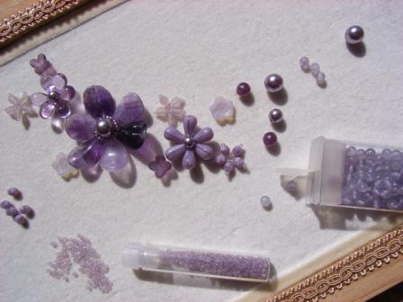今日は予定がなく、のんびりの1日。作りかけのビーズアクセサリーで遊んでいました。もともとはビーズ雑誌に載っていた、白いビーズだけを使ったネックレス。そのデザインが素敵だったので、アイディアをいただき、私の好きな紫色で作ってみることに。 お花のパーツをそれぞれ作って、最後に丸小ビーズでチェーンを編みながらお花を取り付けていきます。パーツを並べてみて、バランスを見たり、丸小の色を合わせてみたり…。こうして考えているときって、時間を忘れます。いろんな紫のビーズを集めるのが大変でしたが、コレクター魂が燃えましたね(笑)真ん中の大きい花はアメジストの花びら。ビンテージビーズも使ってみました。さて、どんなネックレスになるでしょう~。ビーズで2~3時間遊んで、ちょっと肩が凝ったな…、と思ったら運動です♪血行がよくなると肩こりも解消。今日もコンビニフィットネスに行きました。連続5日間、記録更新です~。スタジオは週6日営業(日曜日がお休み)なので、明日も行けば、連続6日間!ですが、明日から娘を連れて、1泊2日で私の実家へお泊まりの予定。なので更なる記録更新はまたのチャレンジですね。クーとだんな様にお留守番してもらって、ゆっくり遊んできます~。