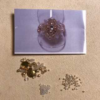 火曜日はいつもお休みだけど、今日は臨時に出勤。午後はビーズ遊び。昨日に続いてジュリアンさんのリングキット作り。オーバルのパール調アンティークパーツがかわいらしい。小さなパーツを組み合わせて作るこういうリングがやっぱり好きだなあ。これも残念ながら経年劣化で一部のパーツの塗装がはげてしまいました。当たり前だけど樹脂などに塗装してあるパーツよりガラスやストーンのほうが耐久性ありますね。